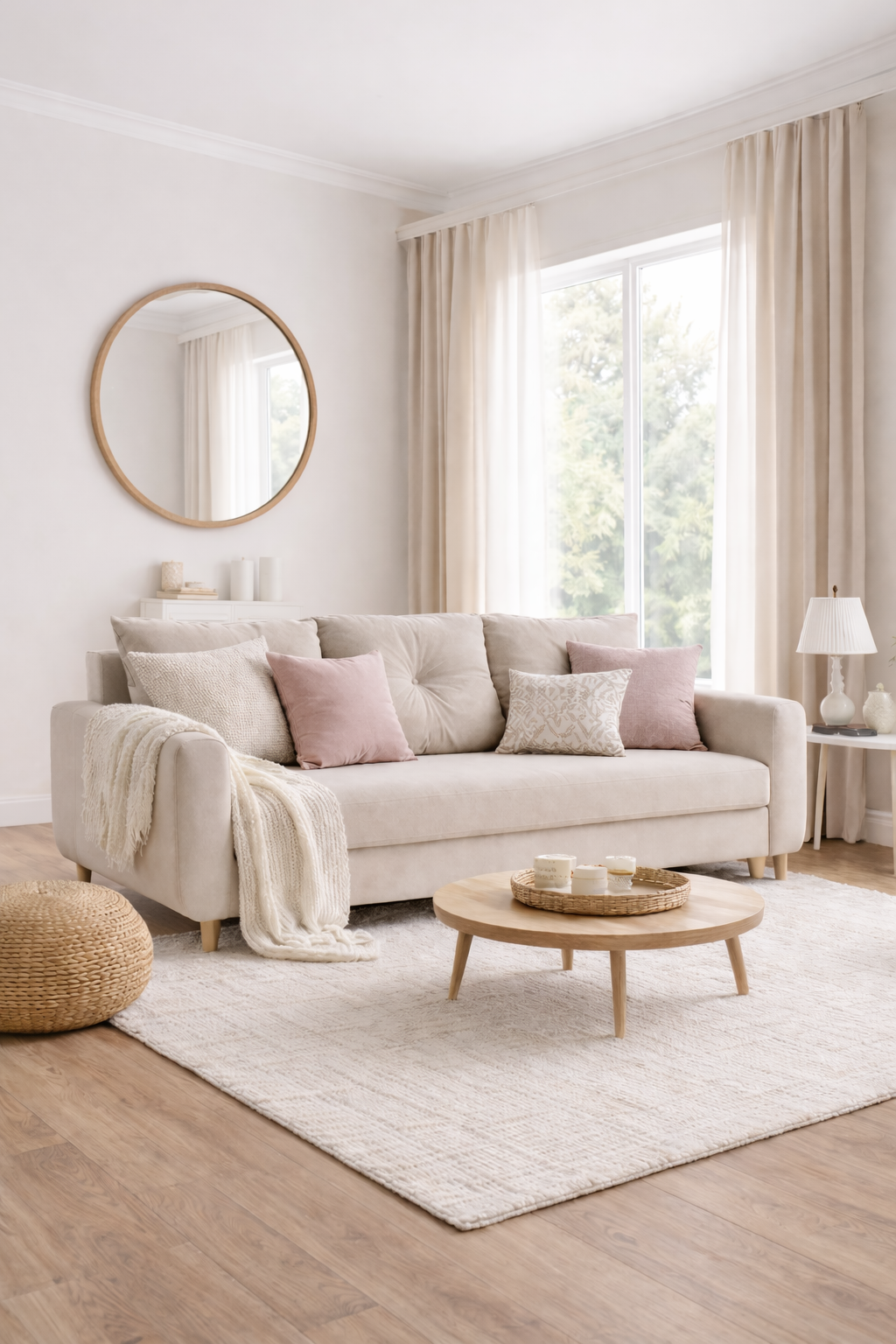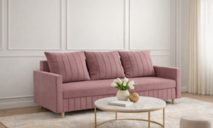 Mebel posiada pojemnik na pościel oraz duże, pikowane wygodne trzy poduszki. Zastosowane w szkielecie elementy z litego drewna podnoszą trwałość i sztywność całej konstrukcji. Kanapa jest bardzo łatwa w montażu i demontażu, złożenie jej zajmuje zaledwie kilka minut.