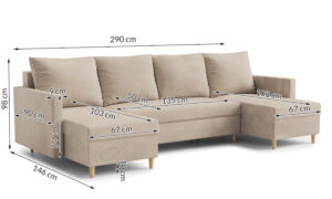 Pokrycie mebli wykonane jest z miękkich i wytrzymałych tkanin typu boucle.  Do produkcji zastosowano szkielet z płyty wiórowej i drewna, piankę wysokoelastyczną typu HR a poduszki oparciowe wypełniono włóknem silikonowym.